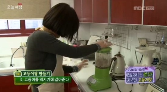 2. 잘익은 고등어를 가시를 발라 믹서기에 넣고 갈아줍니다.